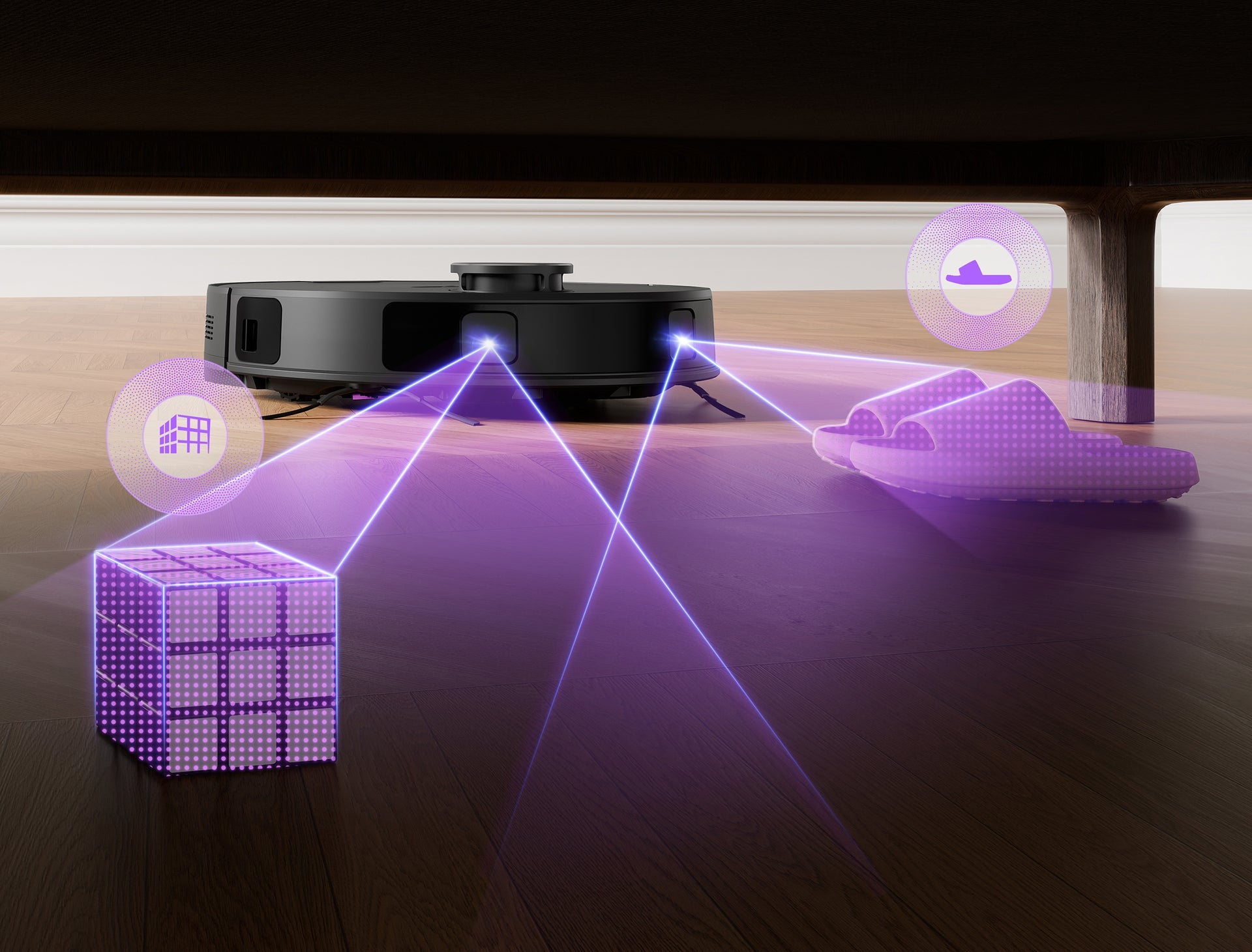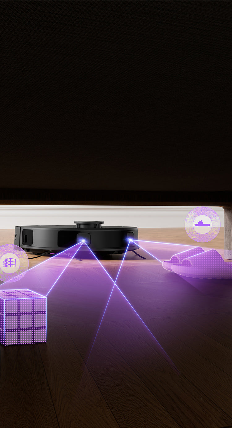 Pokročilá technologie vyhýbání se překážkám DuoDetect AI™ 3D vám umožňuje svěřit úklidové úkoly robotovi, aniž byste museli ručně zasahovat, abyste ho osvobodili.