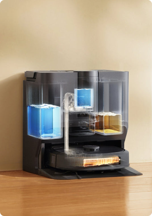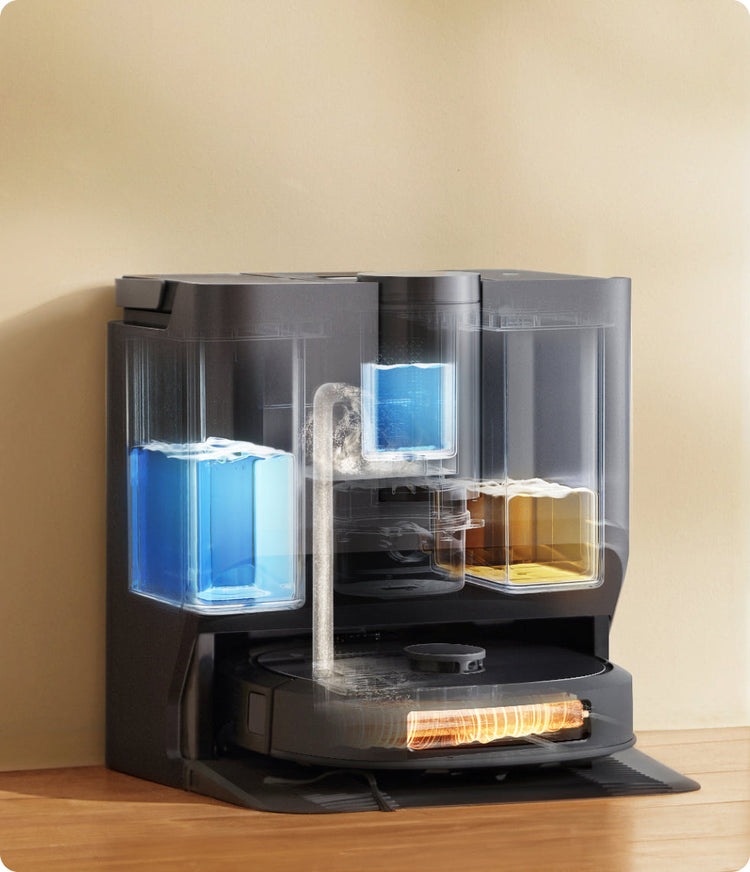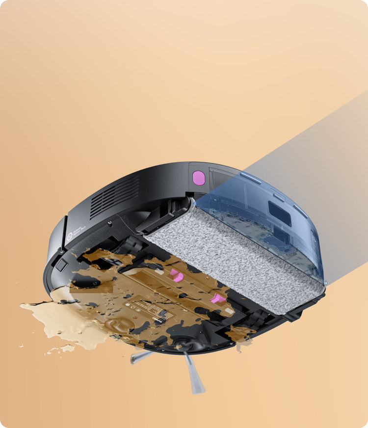 Zcela nový design cyklického pásového mopu je koordinován s roboticky integrovaným systémem dvojité vodní nádrže, který mop nepřetržitě oplachuje, odstraňuje špinavou vodu a důkladně čistí podlahy, aby vám zajistil bezchybný úklid.